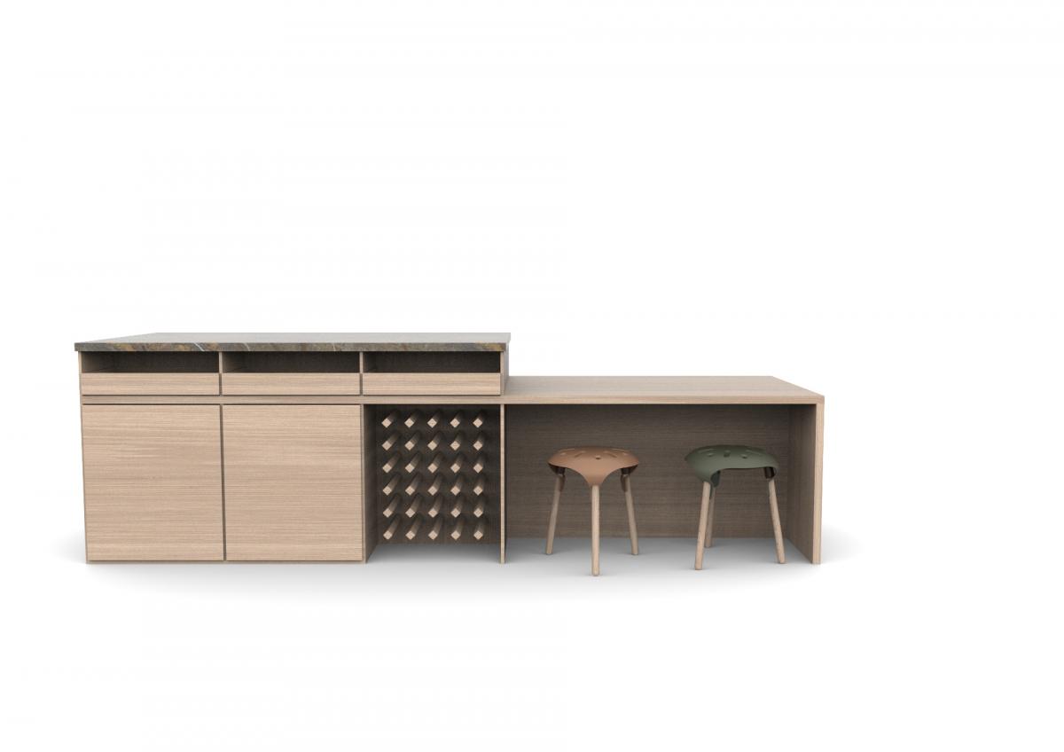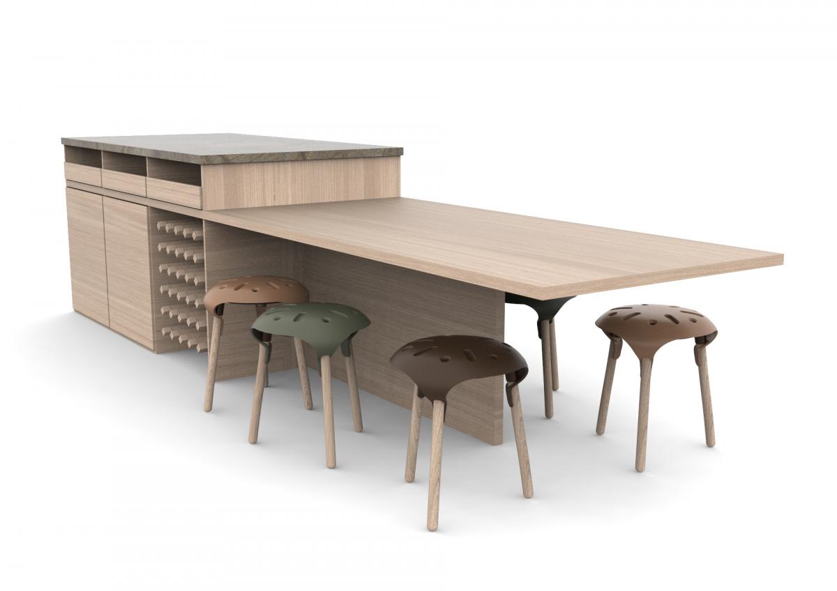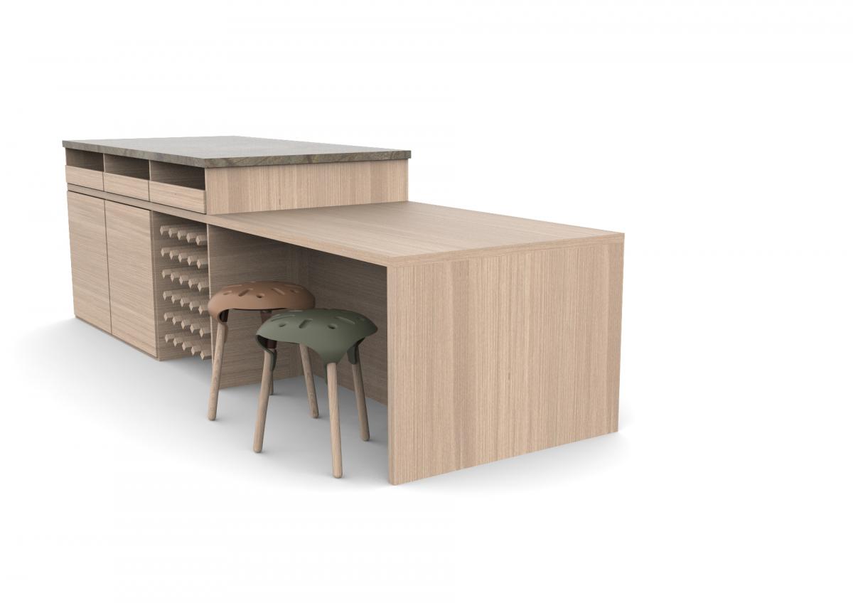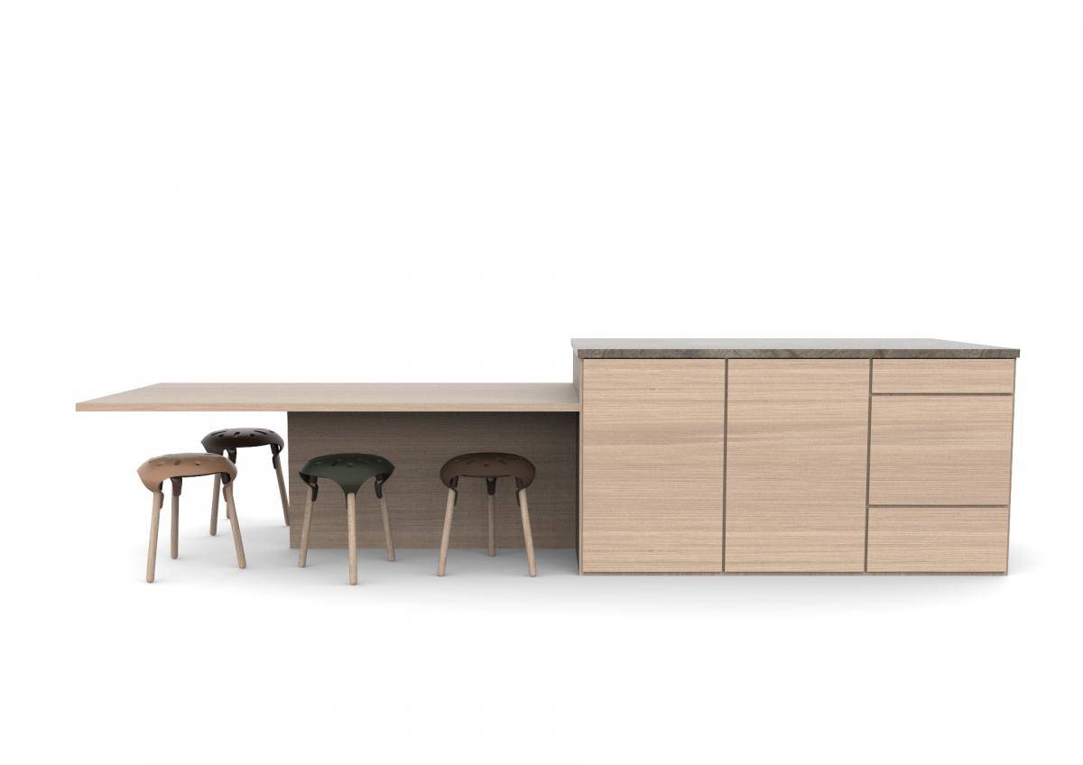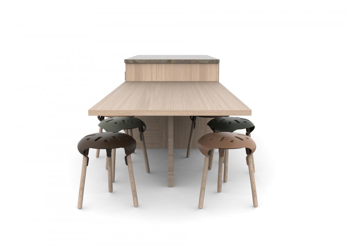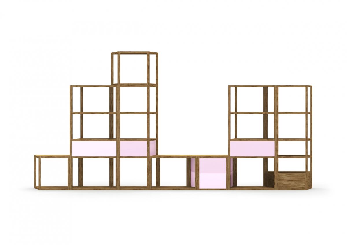 Material & Process: Press-moulded shelves with Oak Veneer, Beech legs.