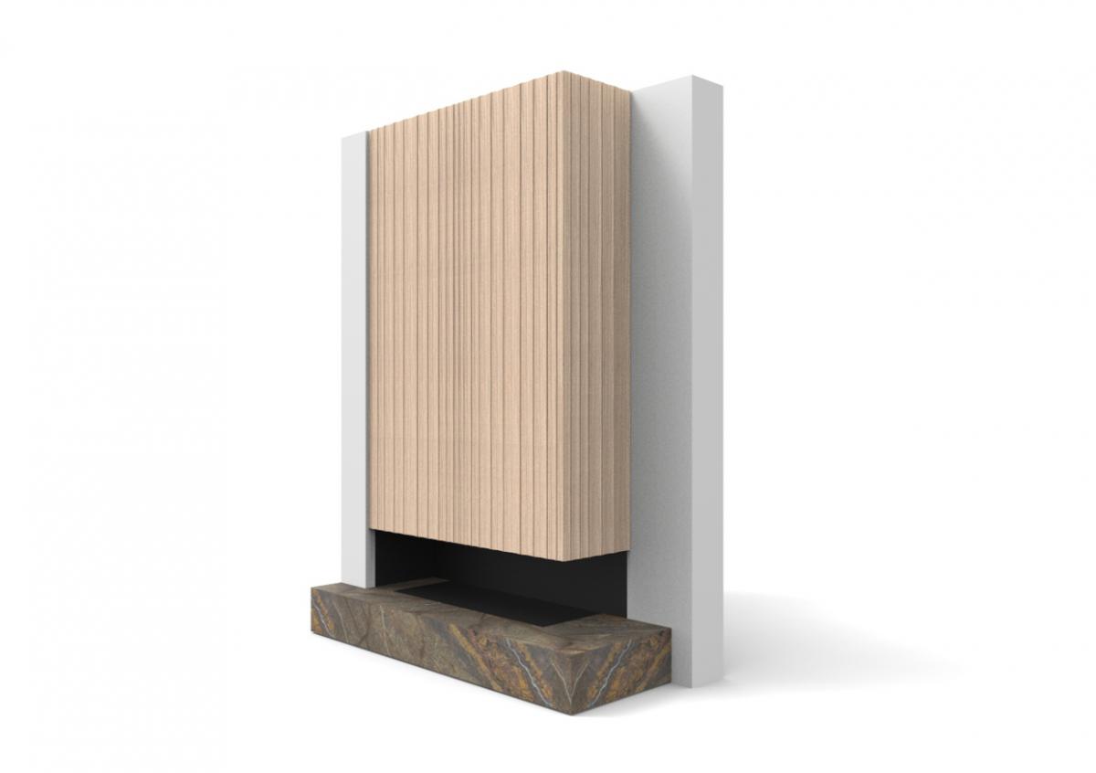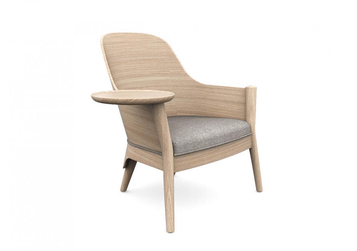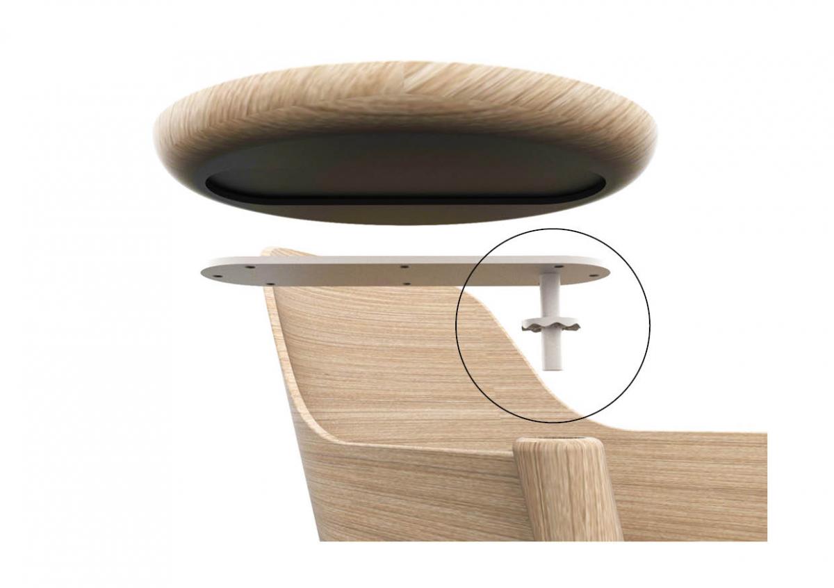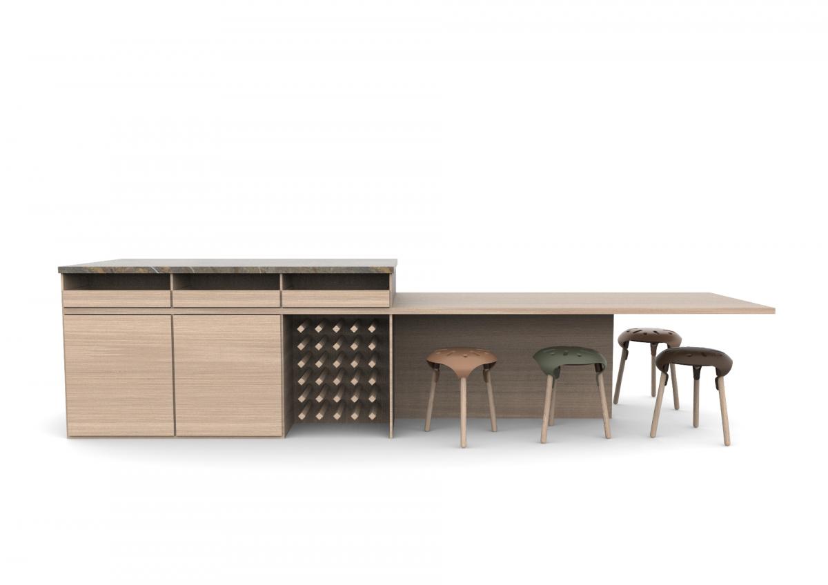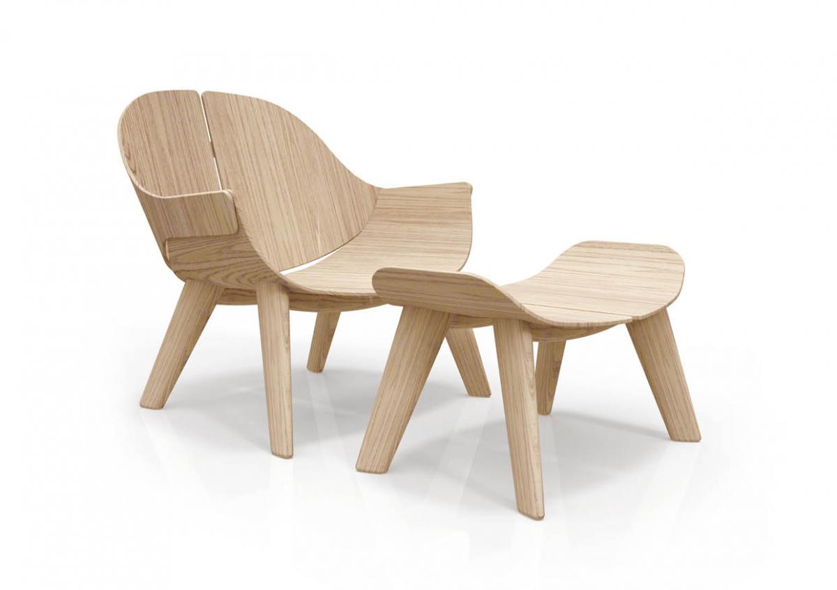 Material & Process: Press-moulded shelves with Oak Veneer, Beech legs.