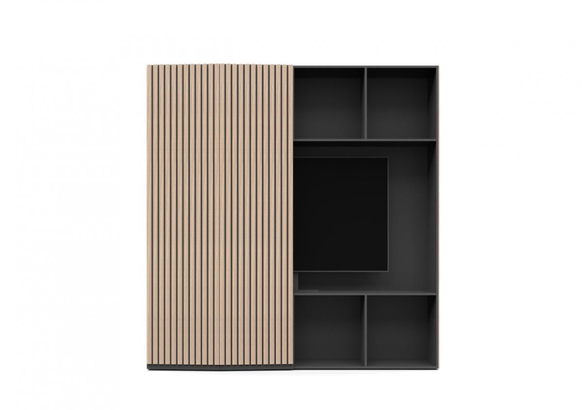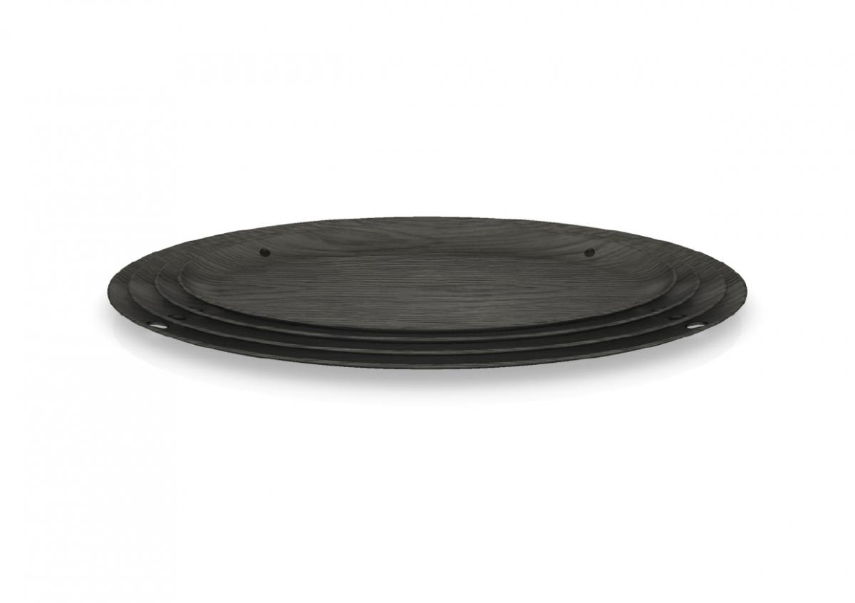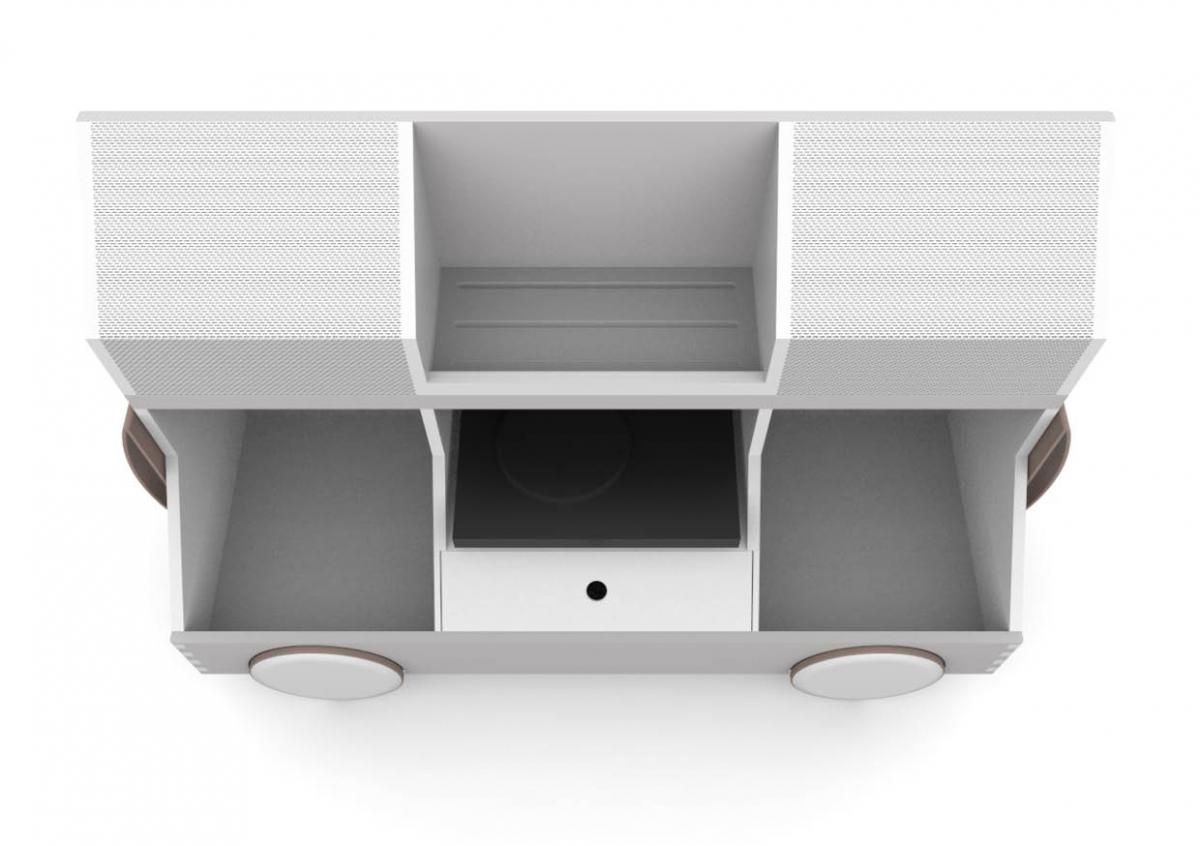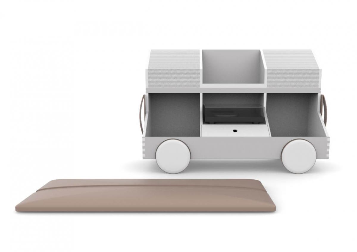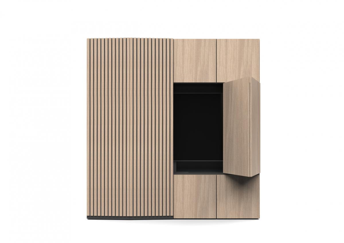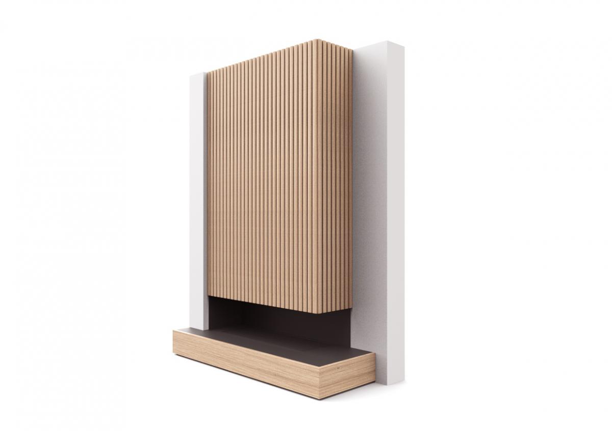 Material & Process: Press-moulded shelves with Oak Veneer, Beech legs.