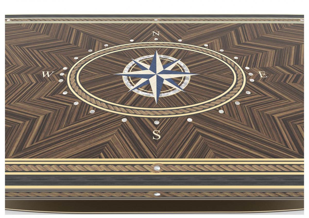 Material & Process: Black Lacquered wood construction, Silk drawer set interior.